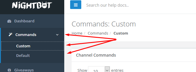 Für Custom, also eigene Commands musst du auf +Add Command klicken und dort deinen Command eingeben. Hier im Beispiel mein Command !name.